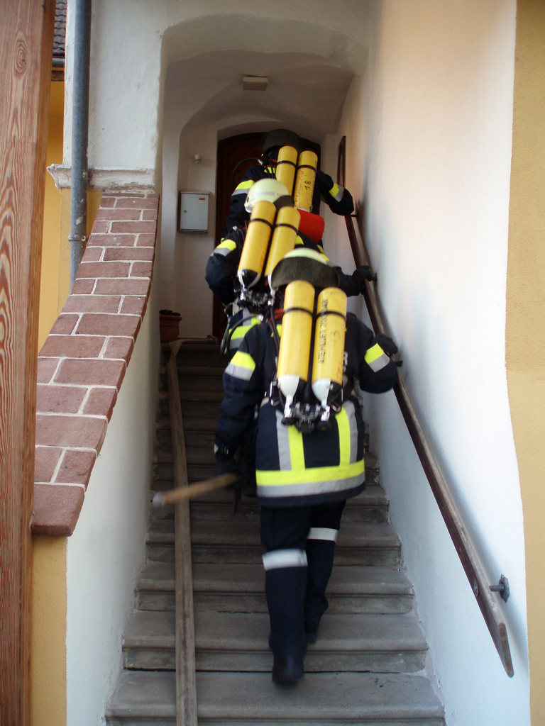 Übungsannahme war, dass es eine Verpuffung, ausgelöst durch Bauarbeiten, gegeben hat. Der dadurch entstandene Brand drohte auf weitere Räume des Gebäudes überzugreifen. 4 Personen galten bei Übungsbeginn als vermisst und mussten von der Feuerwehr Lengenfeld gerettet werden. Ein Atemschutztrupp rüstete sich beim Eintreffen aus und lokalisierte zwei Personen. Zwei weitere Gemeindemitarbeiter wurden durch einen Trupp über die Leiter evakuiert. Im Übungsverlauf breitet sich das Feuer weiter aus, wodurch der Einsatz eines B- und drei C-Strahlrohren erforderlich wurde.