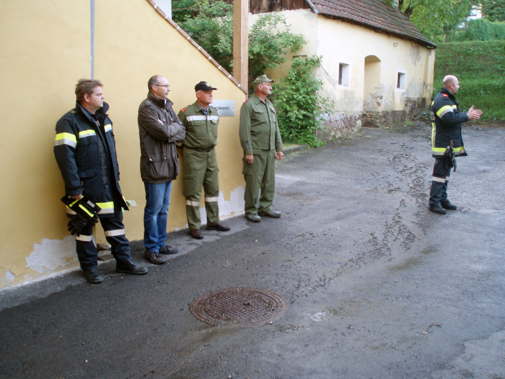 Nach der Übungsbesprechung führte uns der Gemeindesekretär Gerhard Hinterecker noch durch die Räumlichkeiten des Gemeindeamtes. Um 21 Uhr rückten alle Fahrzeuge wieder in das Feuerwehrhaus ein, wo uns die Gemeinde zum Essen einlud.