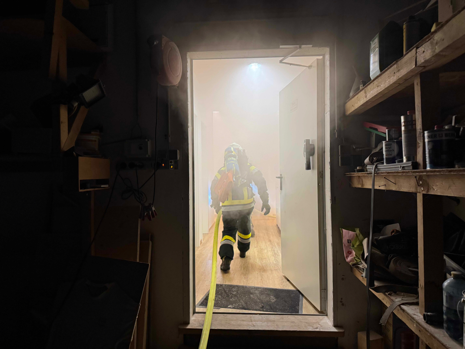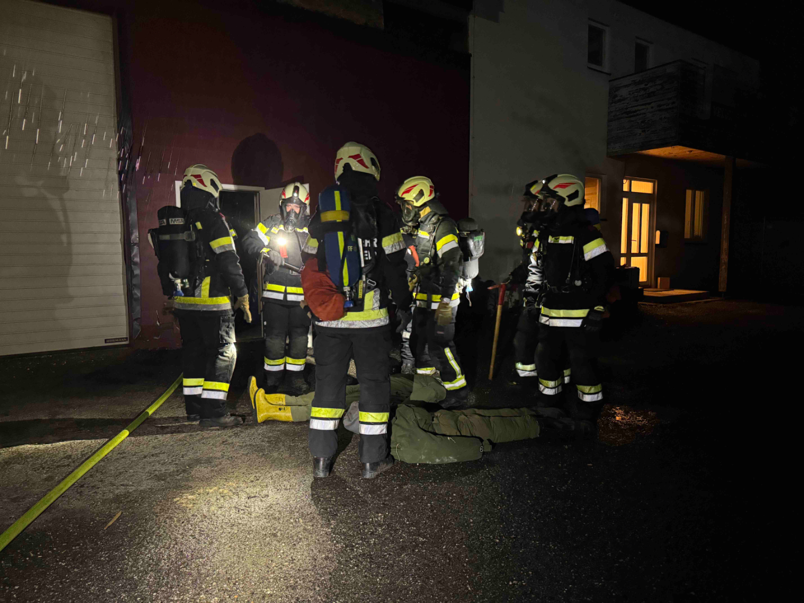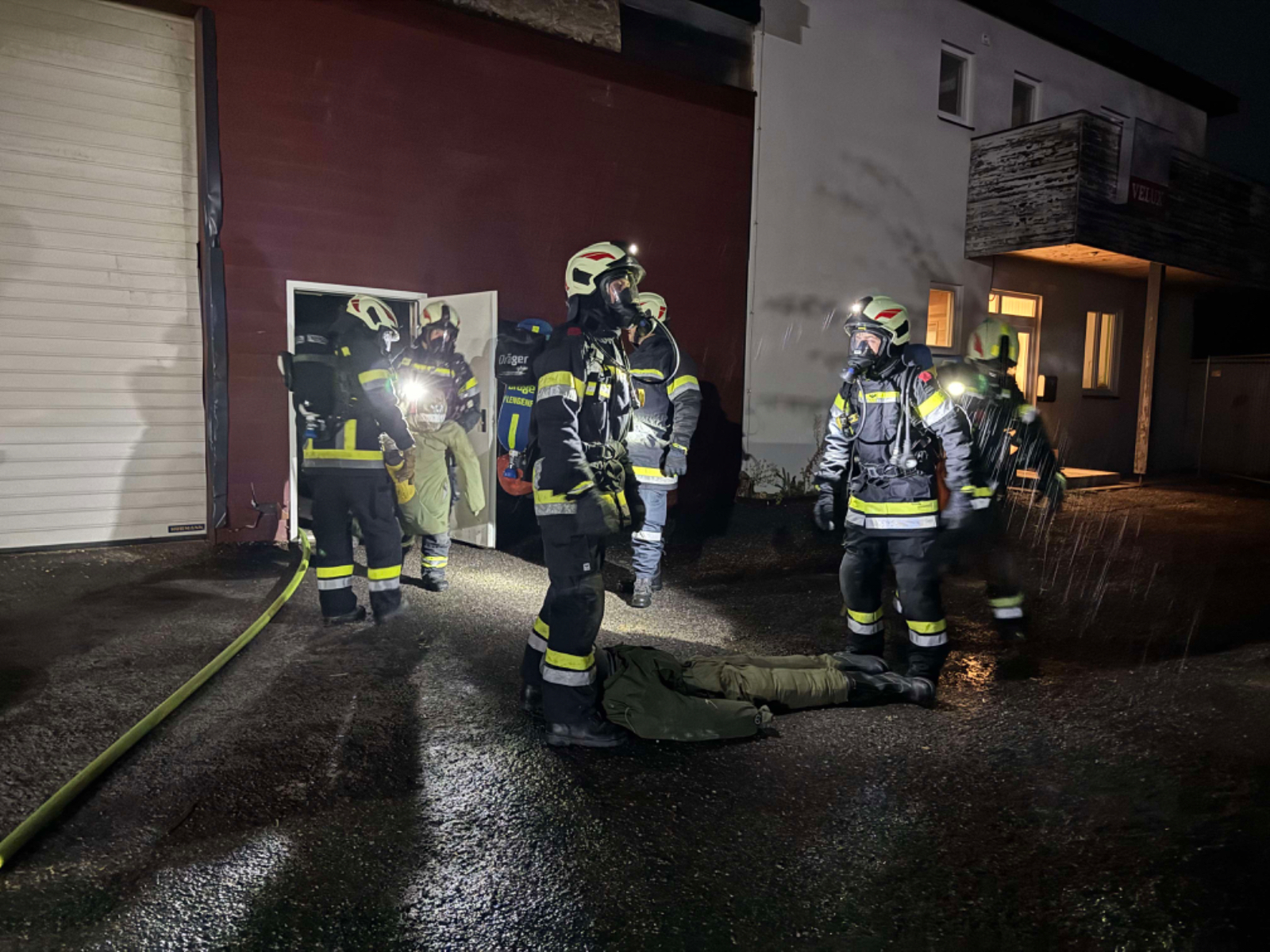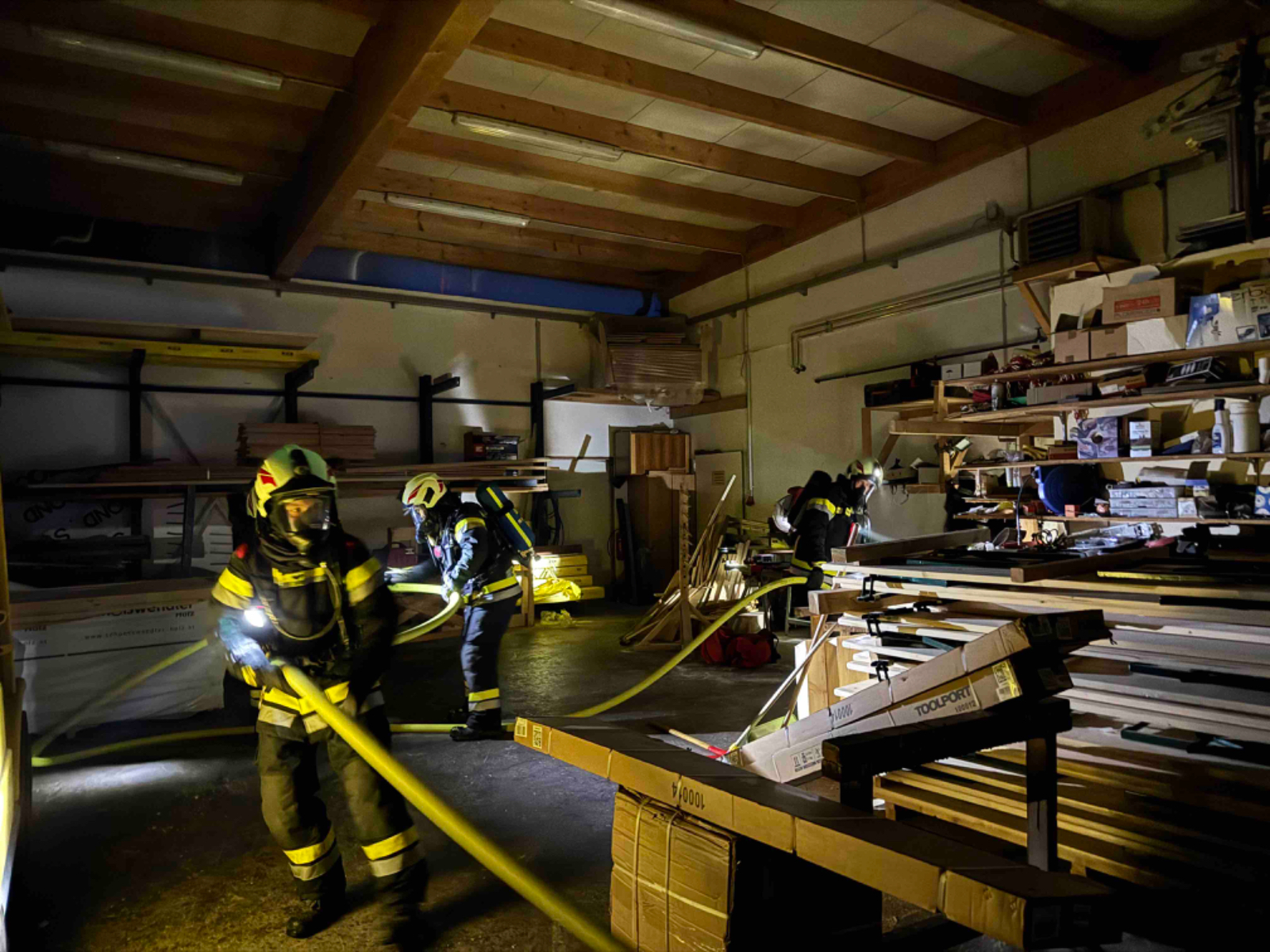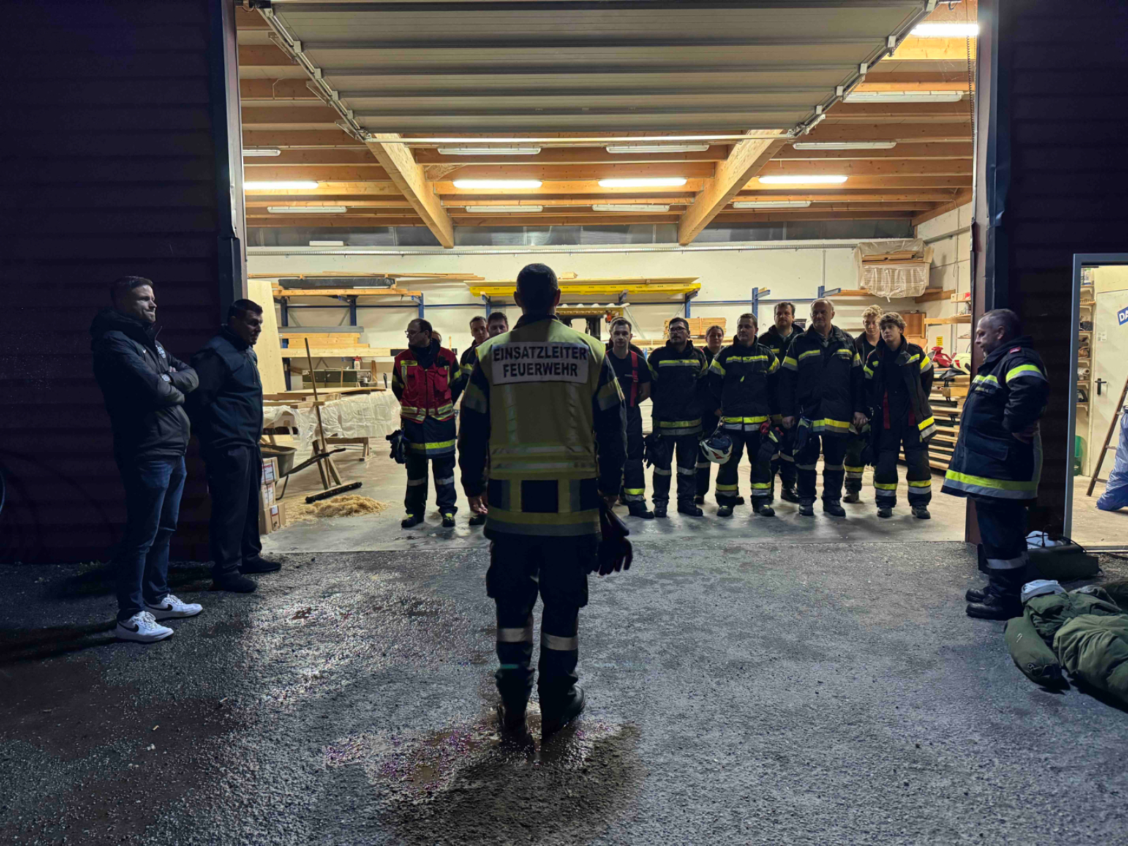 Übungsannahme war ein Brand in einer Zimmerei mit zwei vermissten Personen. Zum Übungsort rückten Rüstlösch sowie Tank Lengenfeld aus und stellten jeweils einen Atemschutztrupp. Innerhalb kürzester Zeit konnten die beiden Atemschutztrupps die abgängigen Personen retten. Die restliche Mannschaft führte die Brandbekämpfung von außen durch.