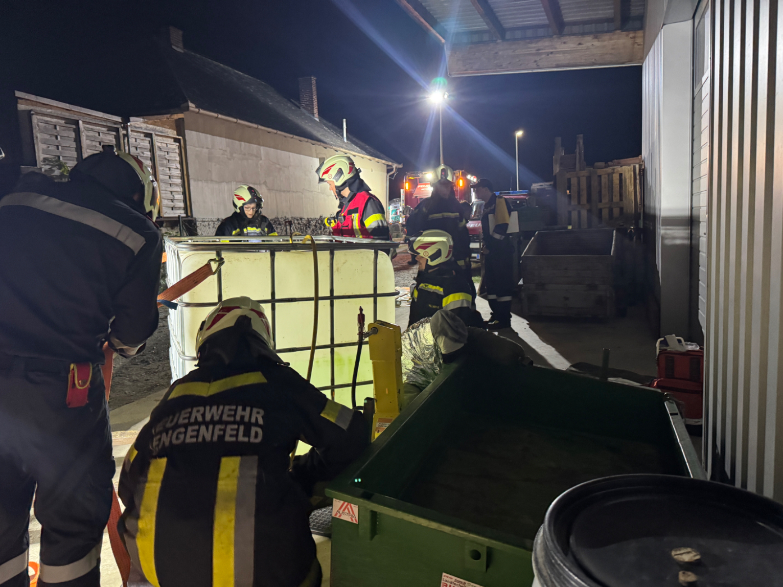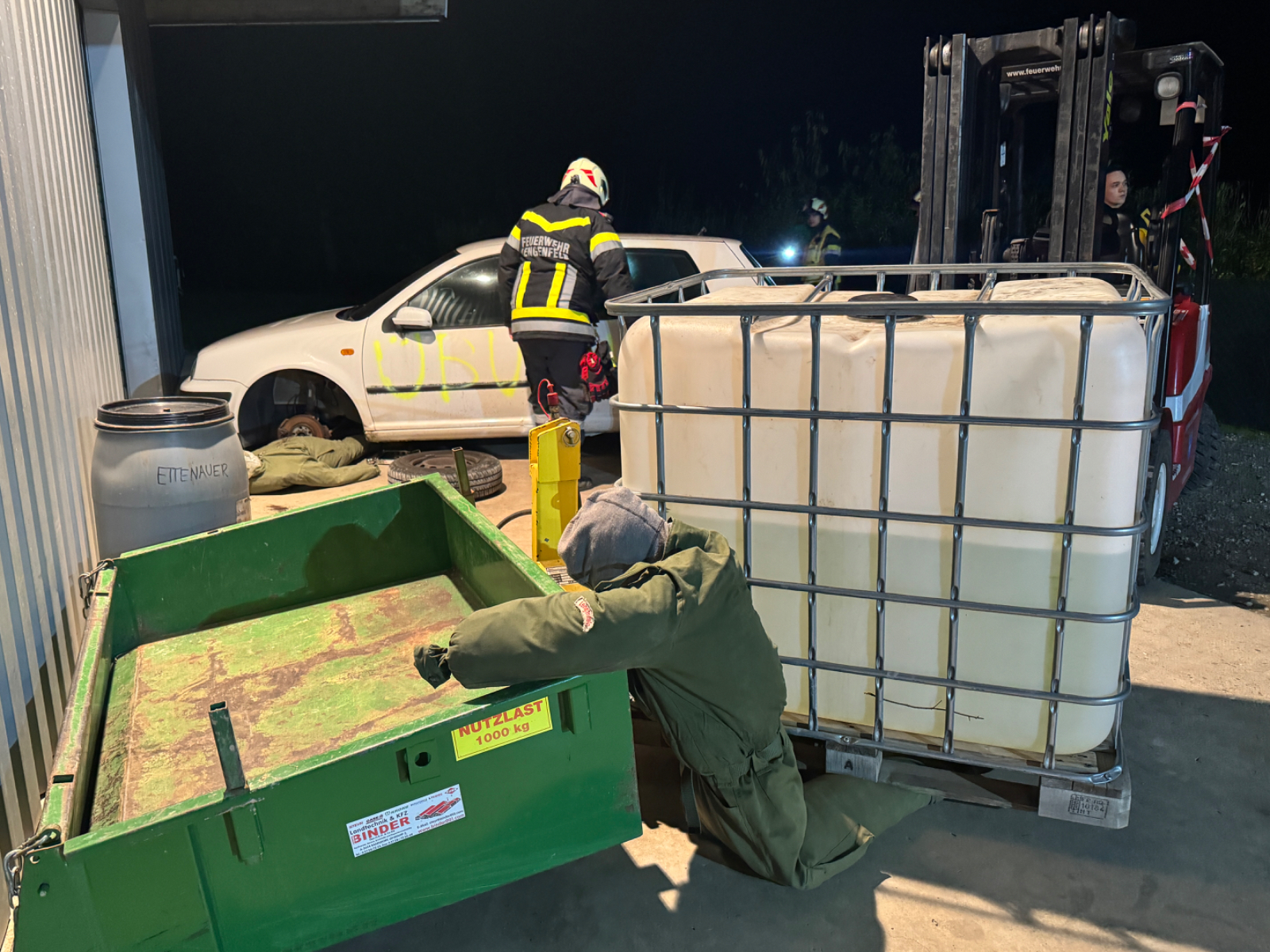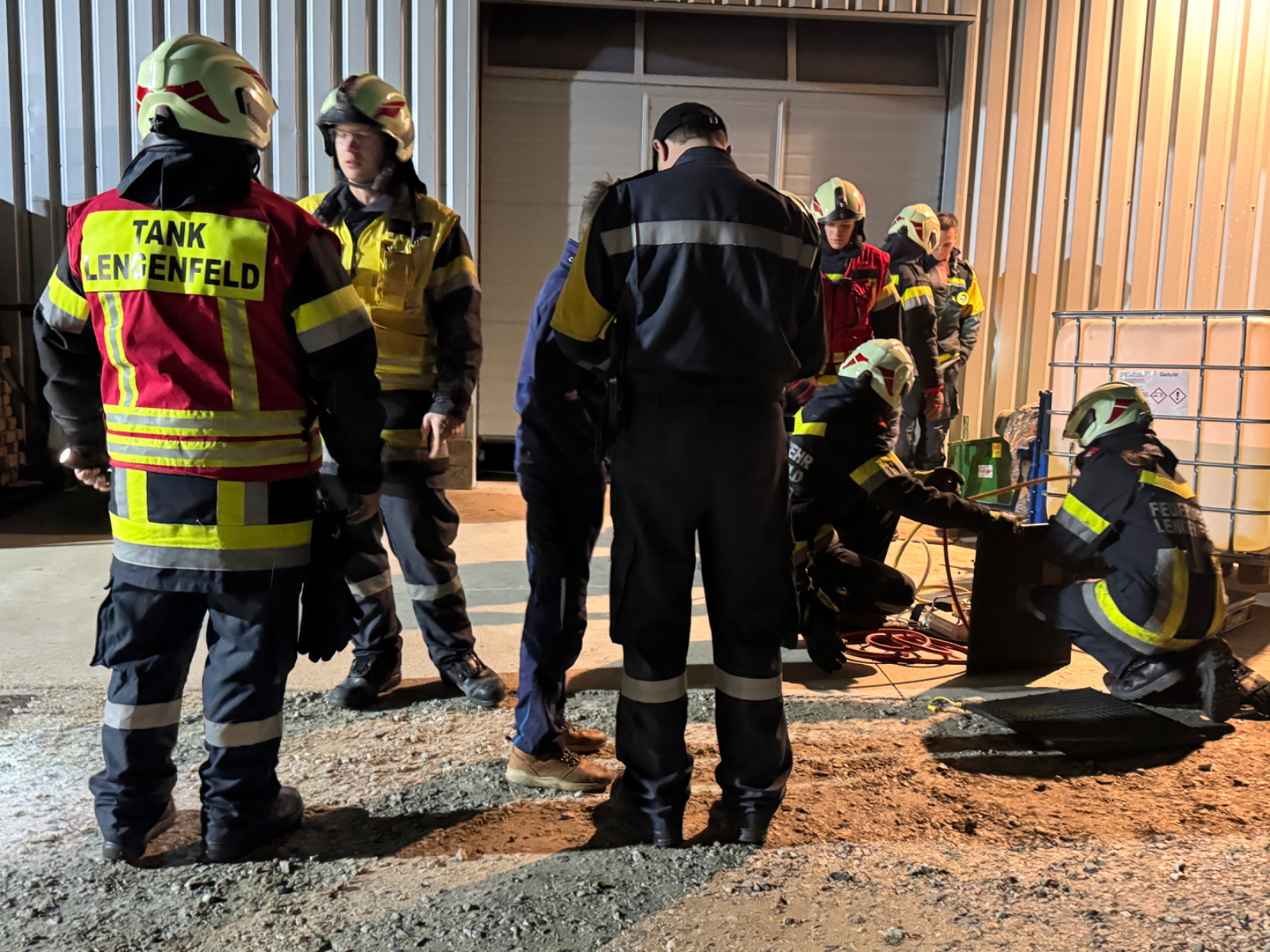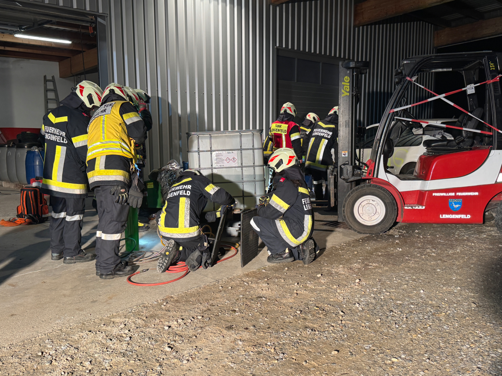Parallel dazu holte der Einsatzleiter Informationen über den im Container befindlichen Stoff ein. Mithilfe von zwei Hebekissen konnte die erste eingeklemmte Person rasch befreit werden. Auch der Mechaniker konnte wenig später unter Einsatz des neuen Akku-Kombigeräts sicher aus seiner Zwangslage gerettet werden.